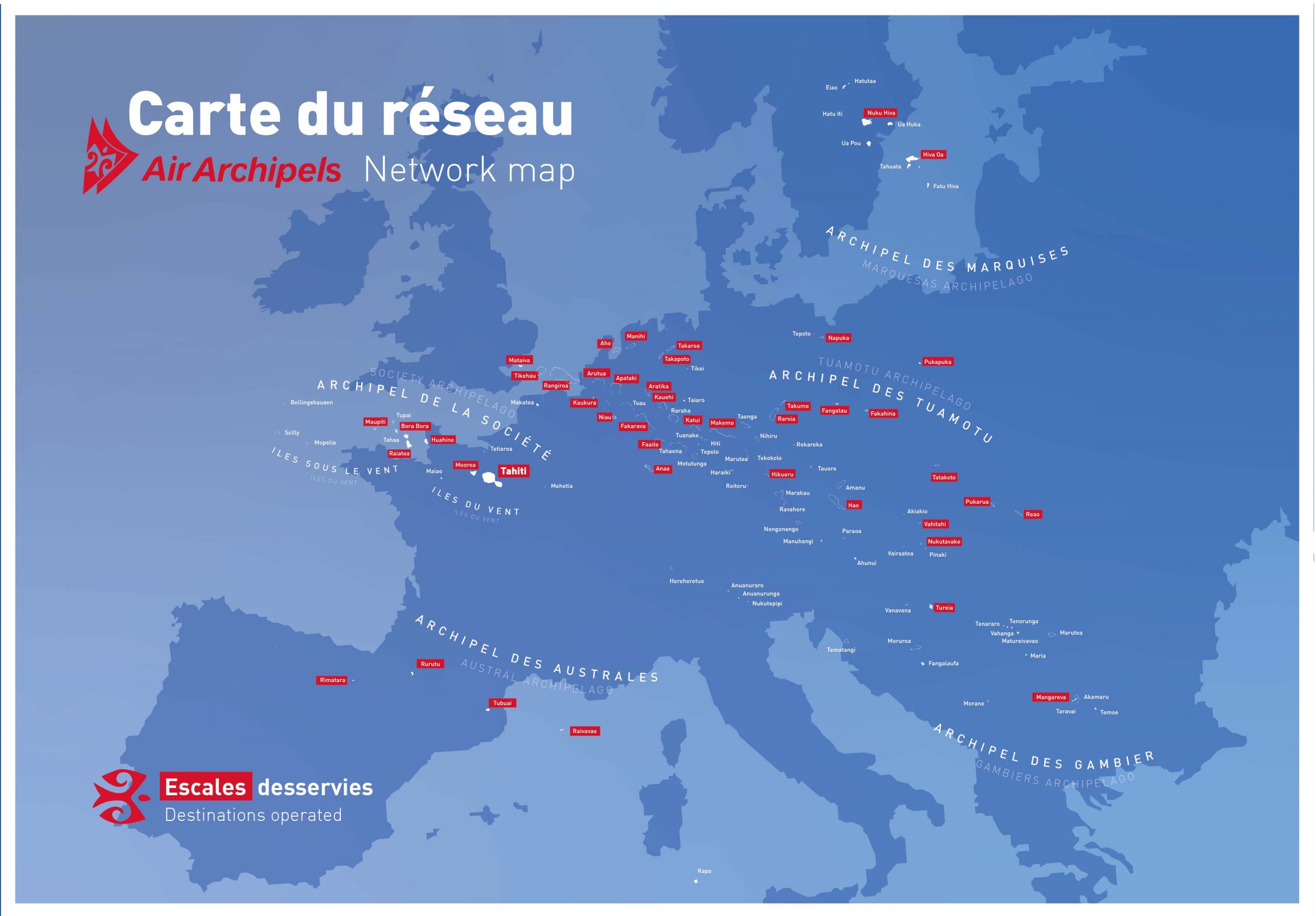 Polynesia is rich in preserved destinations. Many of them benefit from the presence of an aerodrome and we are keen to include all these islands* among our destinations, thus offering our customers the possibility of reaching them.